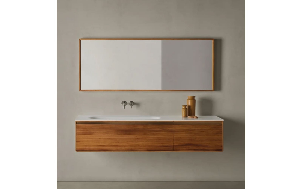 Le bois à l’état brut, comme nous pouvons le retrouver avec le teck, plonge la salle de bain dans une ambiance plus naturel et plus zen. Qu'il soit verni ou huilé, il donne un rendu plus esthétique qu'il soit placé au sol, au mur ou en tant que meuble. Il donnera une touche de luxe à votre salle de bain. C'est un parfait compromis entre le bien-être, le design, la modernité et l'authenticité.